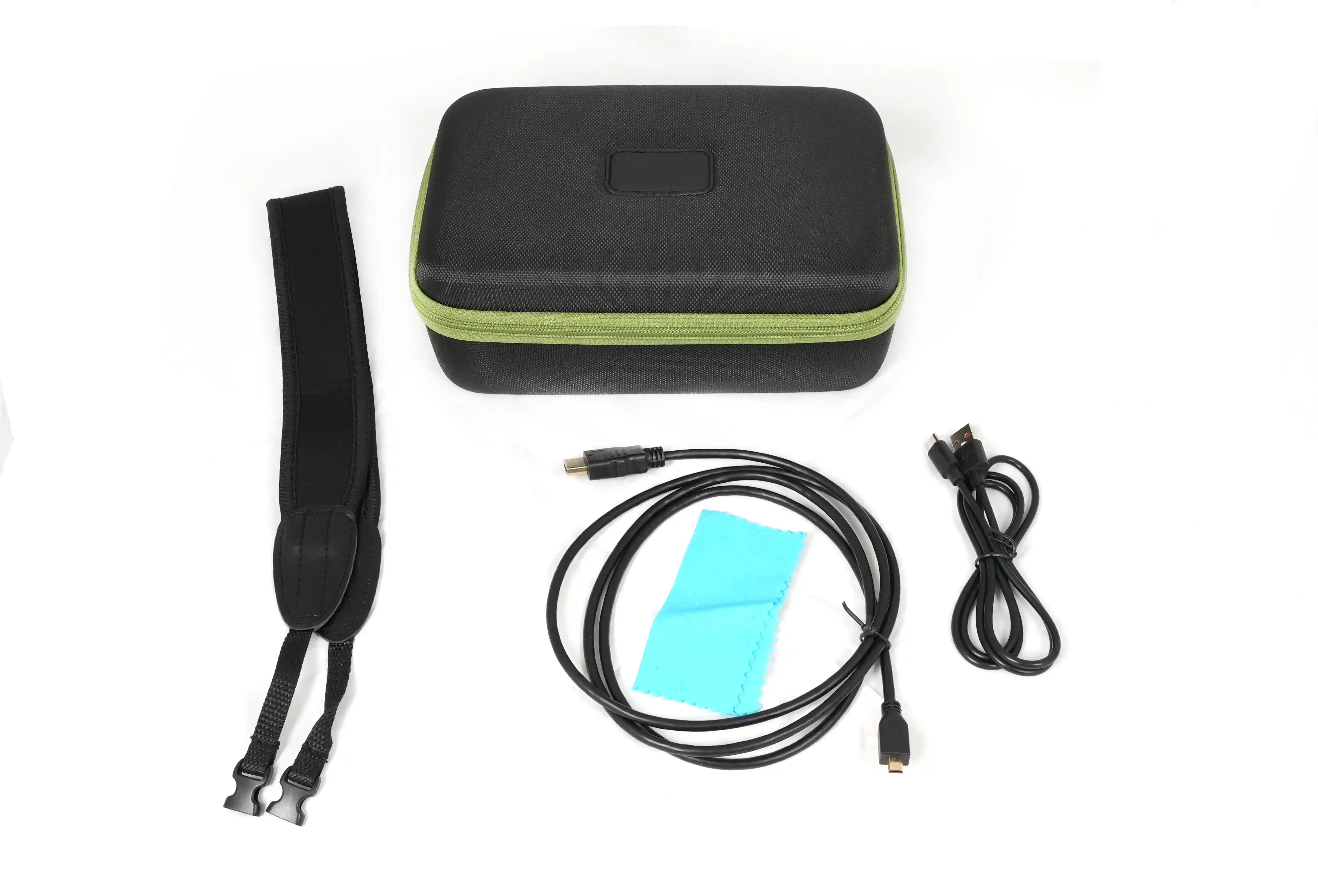Встроенный рекордер записывает видео в разрешении 4K (2880×2160 пикселей), а фото сохраняются в качестве 16,12 МП (5360×3008 пикселей). Медиаинформация хранится на встроенном накопителе объемом 32 ГБ. При необходимости можно использовать дополнительные карты памяти емкостью до 512 ГБ (FAT32). Для вывода изображения имеется HDMI-разъем.