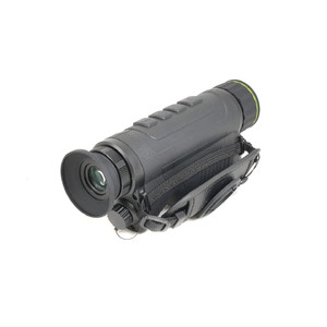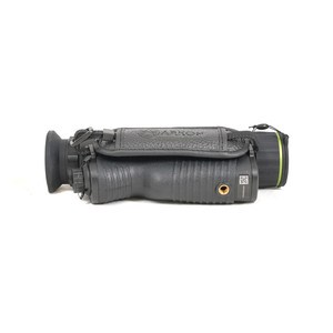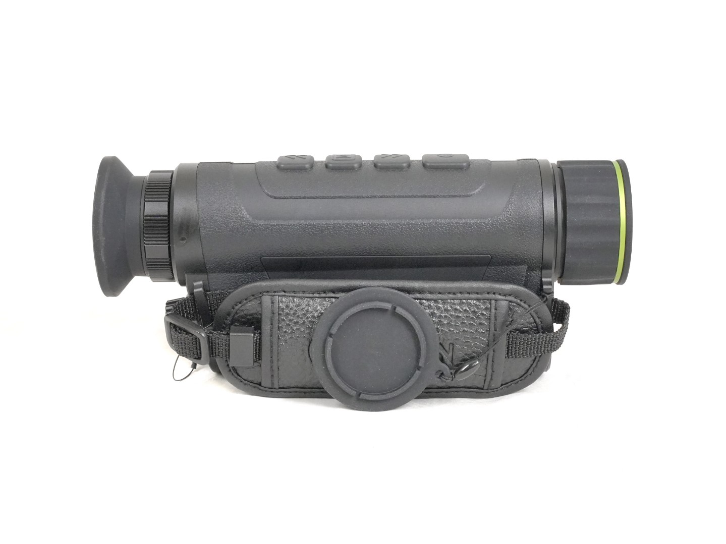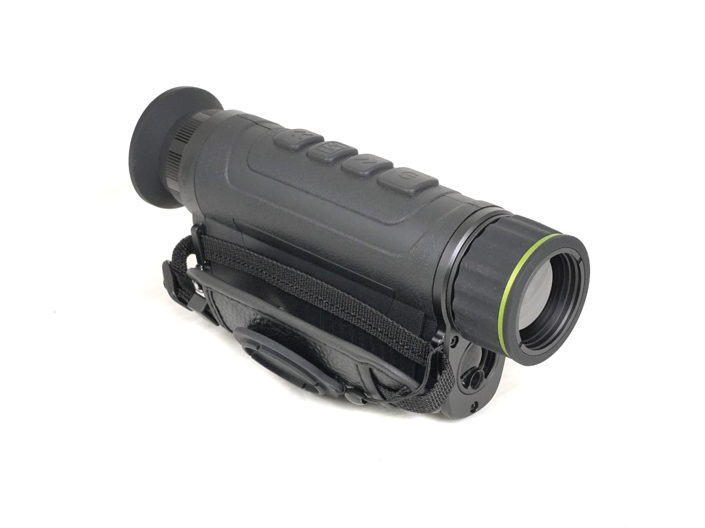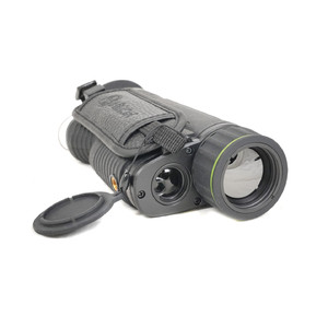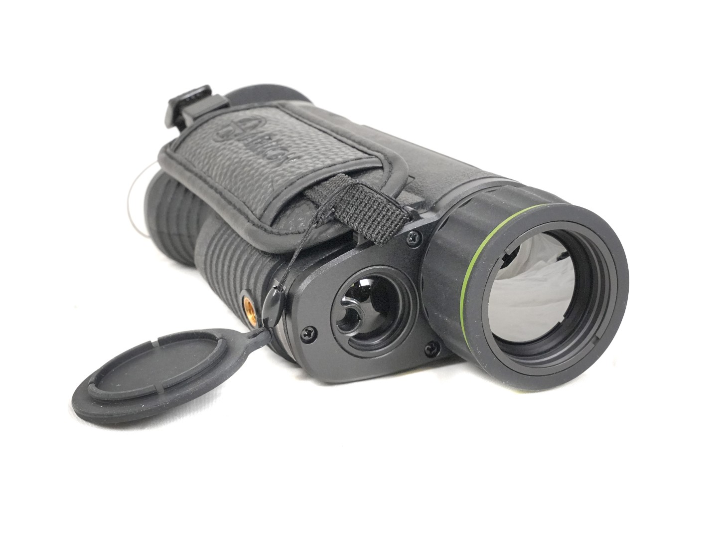 Этот тепловизор оснащен германиевым объективом с фокусным расстоянием 35 мм, относительным отверстием 1.0 и оптическим увеличением 2,2х. Для масштабирования изображения предусмотрен цифровой зум х1/х2/х4/х8. Благодаря широкому углу обзора FOV (Field of view) 12,6°х10,1°, п что в линейном выражении соответствует видимой области пространства размером 21,9 х 17,5 метров на удалении в 100 м.