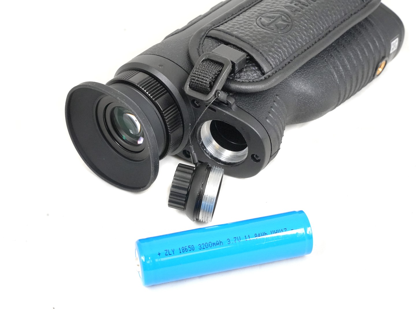 Тепловизор работает от сменного аккумулятора 18650 с емкостью 3200 мАч, что обеспечивает до 5 часов его автономной эксплуатации. При необходимости возможно подключение внешнего источника питания через USB-разъем, что значительно увеличивает время работы прибора.
