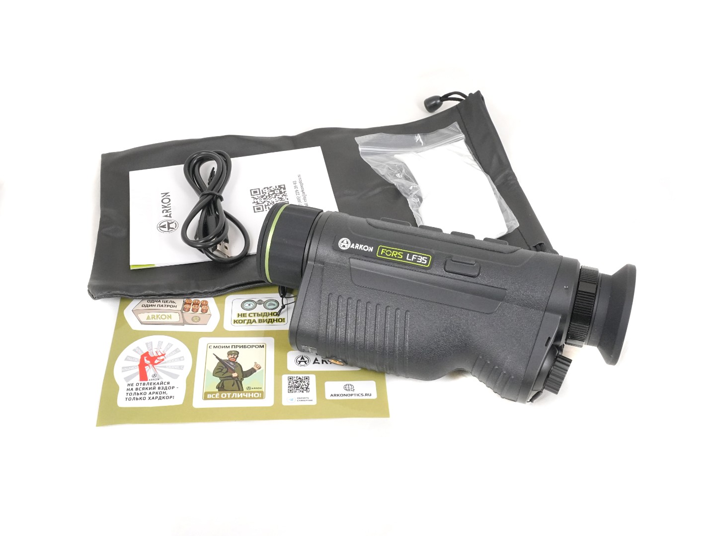 Arkon Fors LF35 оборудован германиевым объективом 35 мм с относительным отверстием 1.0, обеспечивающим базовый показатель кратности 3,8х. Дополнительно пользователю доступен цифровой зум х1/х2/х4/х8, позволяющий детально рассматривать объекты на различных дистанциях. Угол пространственного поля зрения FOV (Field of view) составляет 7,5° х 5,7°, что в линейном выражении соответствует видимой области пространства размером 13,1 х 10,0 м на расстоянии 100 м.